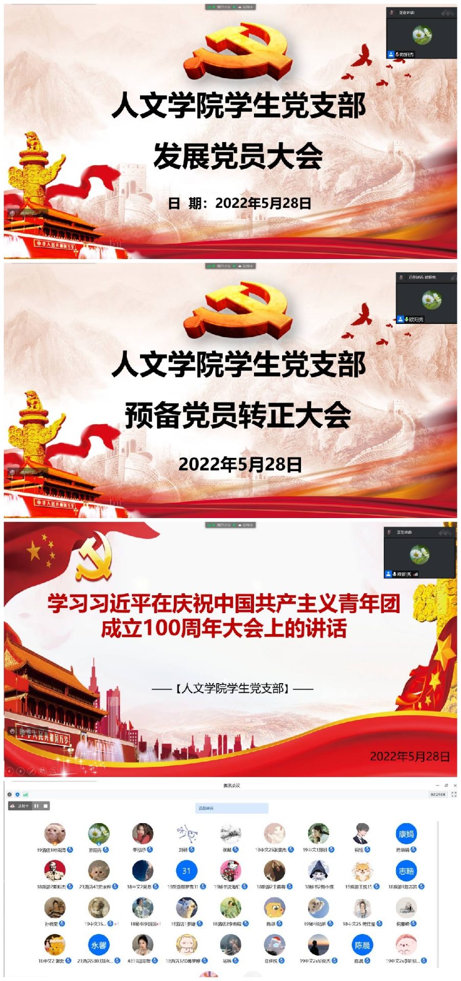 5月28日晚,人文学院学生党支部以腾讯会议的形式举行人文学院学生党支部举行党员发展暨预备党员转正大会。30名正式党员、47名预备党员、19名拟发展对象参会,会议由党支部书记欧阳秀主持。