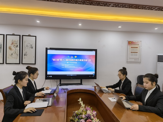 备赛阶段,文秘系提前谋划、层层遴选、精心组织,根据新赛制要求,配备了教学与实践经验丰富的教师悉心指导,参赛选手围绕比赛项目展开了高强度、高密度、高仿真的模拟演练。经过激烈角逐,2020级秘书学专业翟双玉、时敬茹、韩抒、陈典等四位同学组成的代表队,在王文琴、刘平、许梦婕、韩舒立、吴祥军、王宏民、姚志华等老师的指导下,凭借扎实的专业理论基础和实践操作技能获得了评委的肯定,充分展示出我院在秘书学专业人才培养方面取得的良好成效。