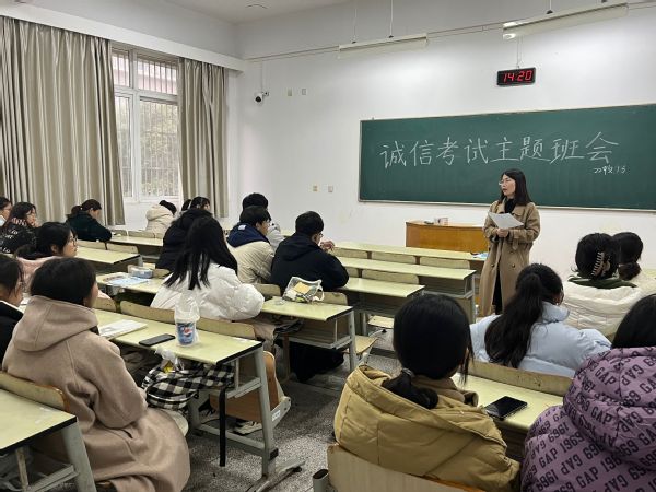 各位班主任老师首先总结了本学期班集体的成绩与不足,强调了诚信考试在班集体工作中的重要性,并和同学们再次学习了《江苏理工学院学生违纪处分实施细则》中关于考试违纪的相关内容。针对大学英语四六级考试、期末考试、研究生入学考试、教师资格证面试等,各位班主任建议学生干部和党员、入党积极分子要起到先锋模范作用,在考试中带头遵守考试纪律。提醒同学们合理安排复习时间和节奏,提高复习质量和效率,希望每一名学生端正学习态度,认真备考,诚信应考。会后,各班级组织学生签署《文旅学院诚信考试承诺书》。