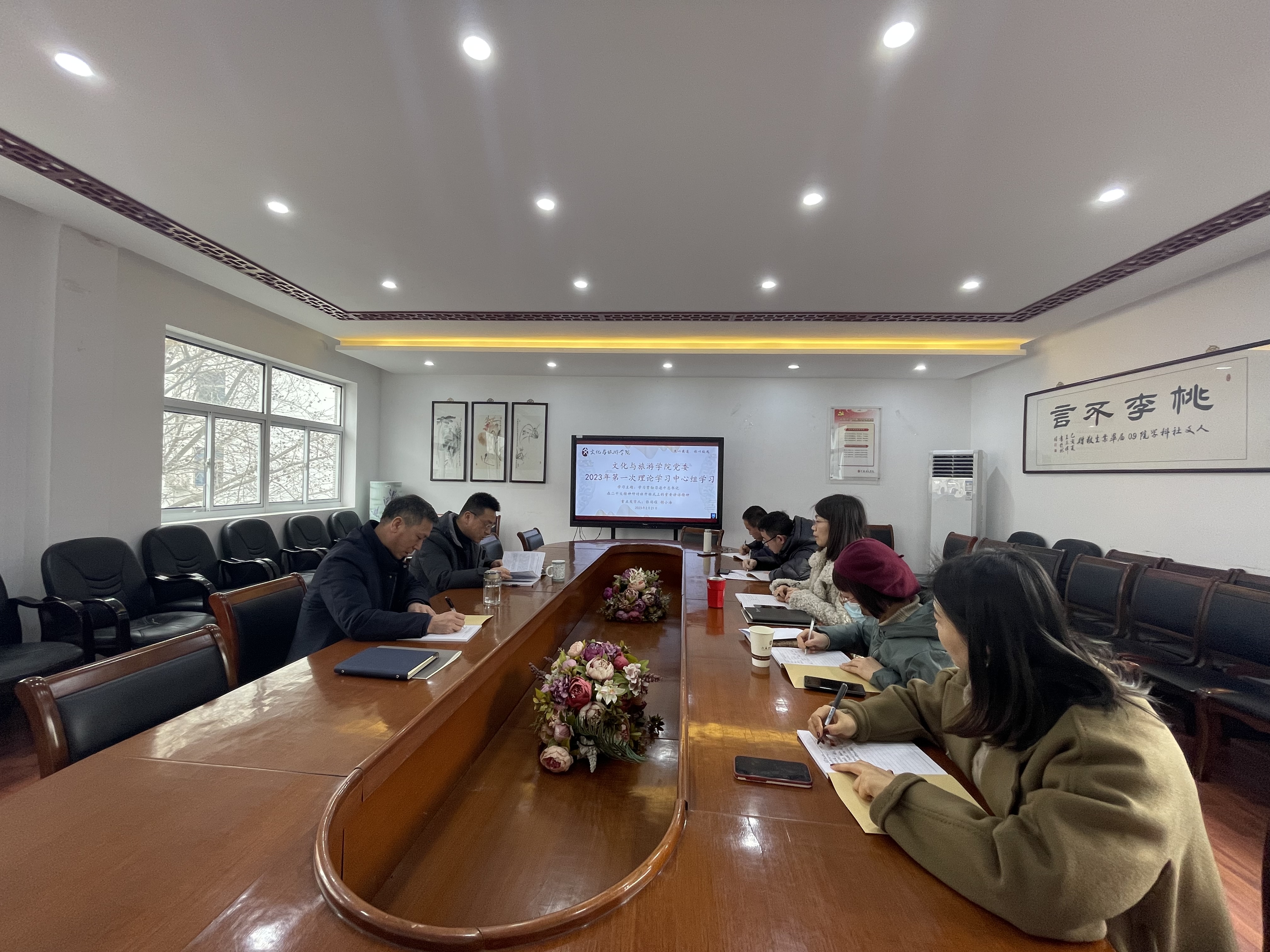 2月21日下午,文化与旅游学院党委理论学习中心组在19#222召开本年度第一次集体学习。本次学习以党的二十大精神为主线,以习近平总书记在学习贯彻党的二十大精神研讨班开班式上的重要讲话精神为重点,全体党委委员出席会议。院党委书记张羽程主持会议。