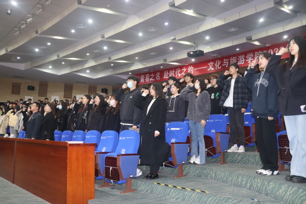 信念点亮人生,青春不负韶华。为全面贯彻落实习近平新时代中国特色社会主义思想,深入学习贯彻党的二十大精神,持续扎实做好团员青年的思想培育工作,厚植爱国主义情怀,强化价值引领。4月7日晚,文旅学院在图书馆北报告厅举行第二十七期青年团校培训开班仪式暨思政第一讲,文旅学院党委书记张羽程,党委副书记兼副院长李晓曼,团委书记张婷,团委副书记顾静雯,以及2022级团学骨干、团员青年、入党积极分子等参加了本次活动,活动由院团委组织部于倩主持。