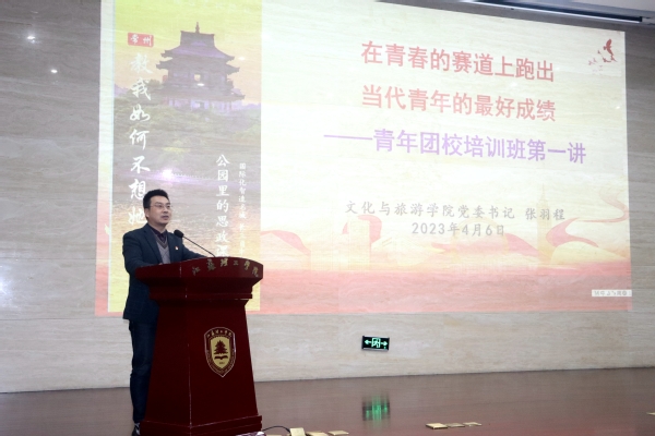 张羽程介绍了党的十八大以来,习近平总书记围绕青年工作发表的一系列重要论述,立意高远,内涵丰富,思想深刻,阐明了新形势下青年工作的重大理论和实践问题,指明了当代青年的历史使命和成长道路,也深刻体现党对共青团和青少年的亲切关怀以及殷切期望。他强调,广大团学骨干要认真贯彻《共青团做好新时代青年人才培养工作的行动计划》,以加强团员青年思想政治教育为核心,以丰富多彩的第二课堂校园文化活动为依托,以服务学生成长成才为宗旨,全面提高学生综合素质,努力开创新时代文旅学院共青团工作新局面。