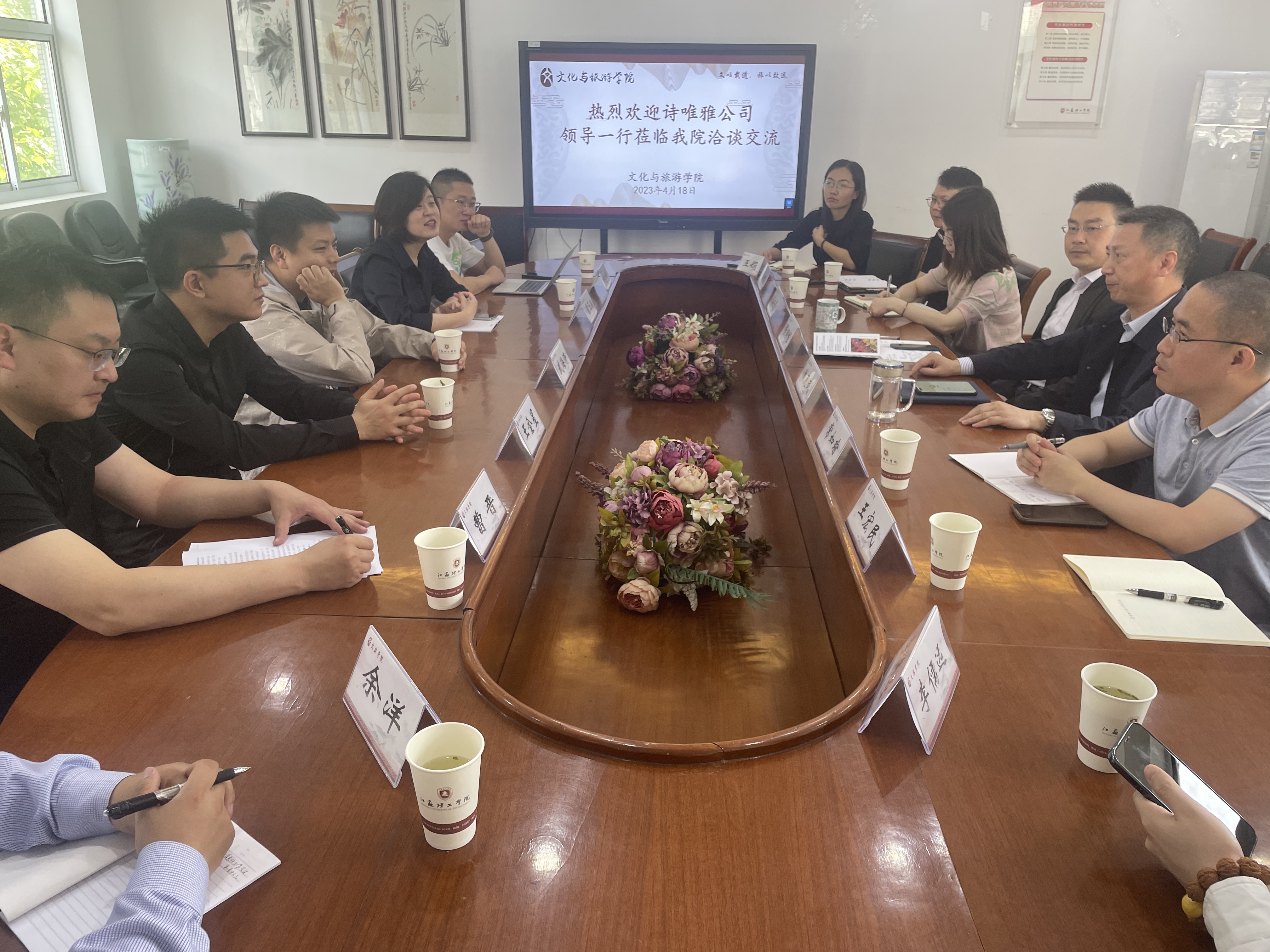 会后,文旅学院领导陪同企业高管一行前往实验室考查。(图/文 徐媛媛 王娟;审核/张羽程)