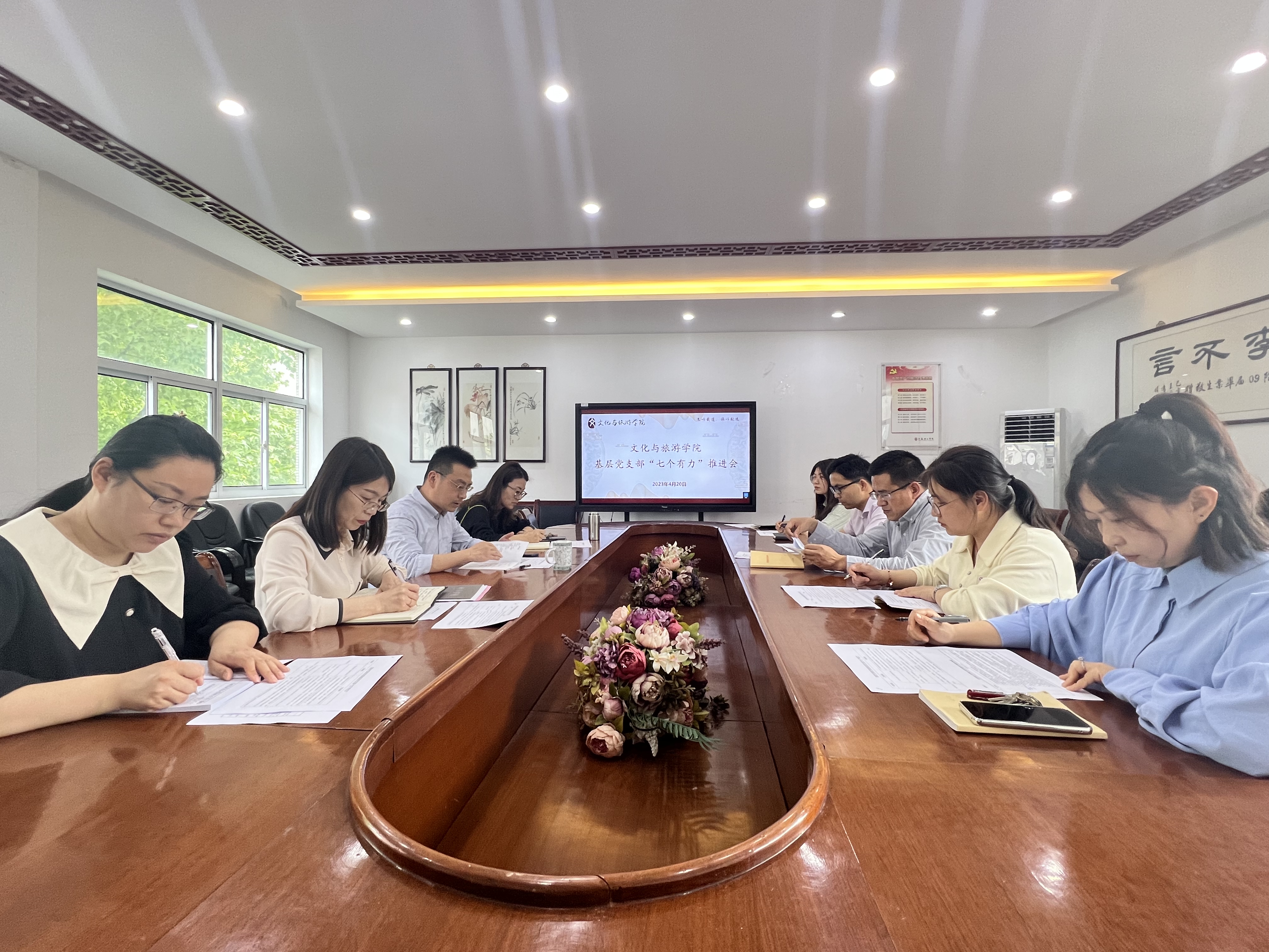 4月20日,文化与旅游学院党委在人文楼222会议室召开基层党支部“七个有力”工作推进会,学院党委书记张羽程、副书记兼副院长李晓曼出席会议,三个党支部书记及支部委员参加会议。