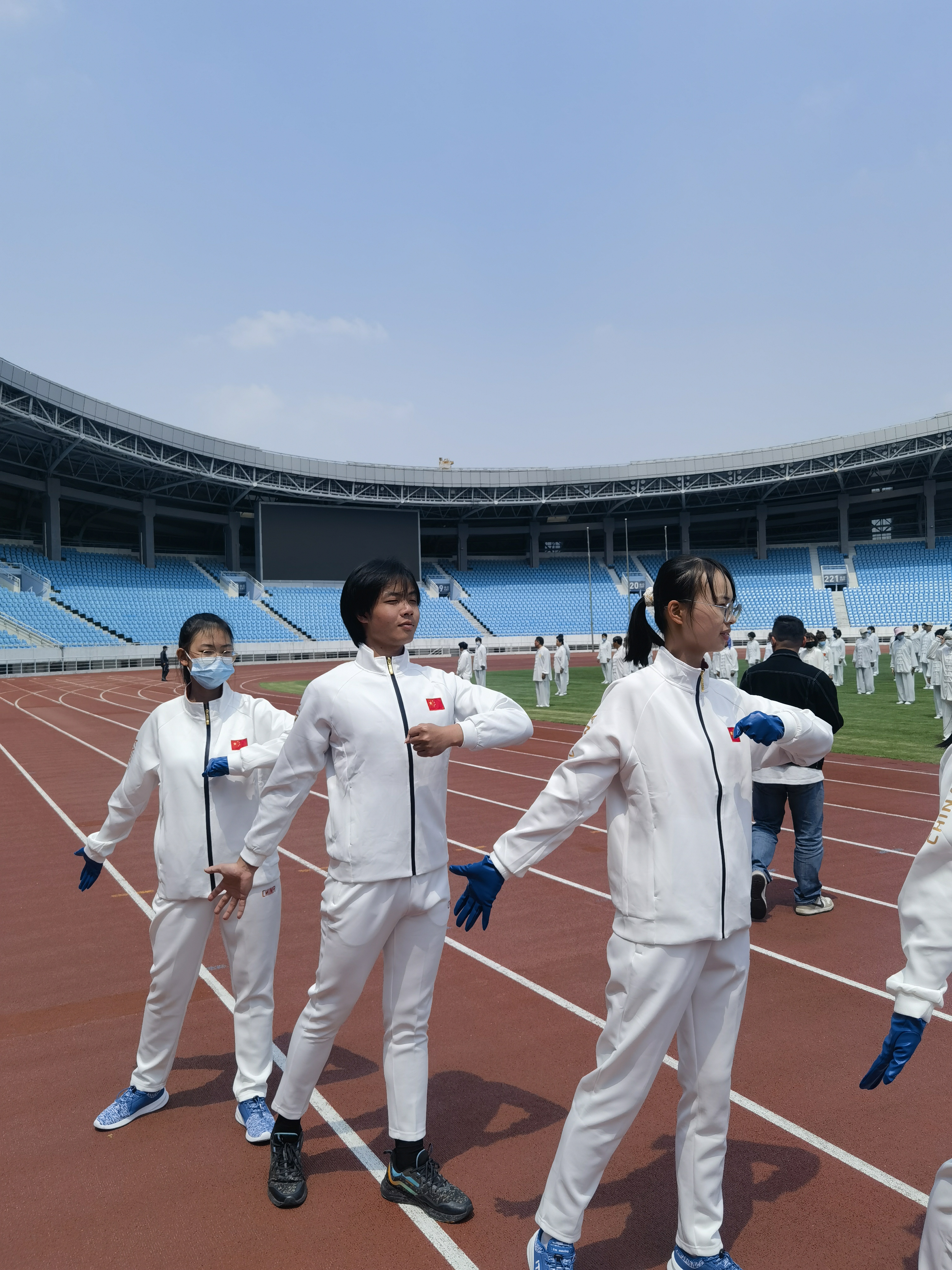 据悉,文旅学院自3月份开始筹备市运会入场式,遴选组成了一支具有良好风貌和奋进精气神的队伍,开展了为期2个月的训练。此次排练,同学们都是利用中午或下午的课余时间,风雨无阻,聘请了常州市钟楼区文化馆舞蹈老师索亮和袁凯编排队形和动作创意,委派学院辅导员老师跟进排练进度,同学们积极配合,认真高效,最终圆满完成任务,诠释了独属于文旅青年学子的蓬勃向上的形象。
