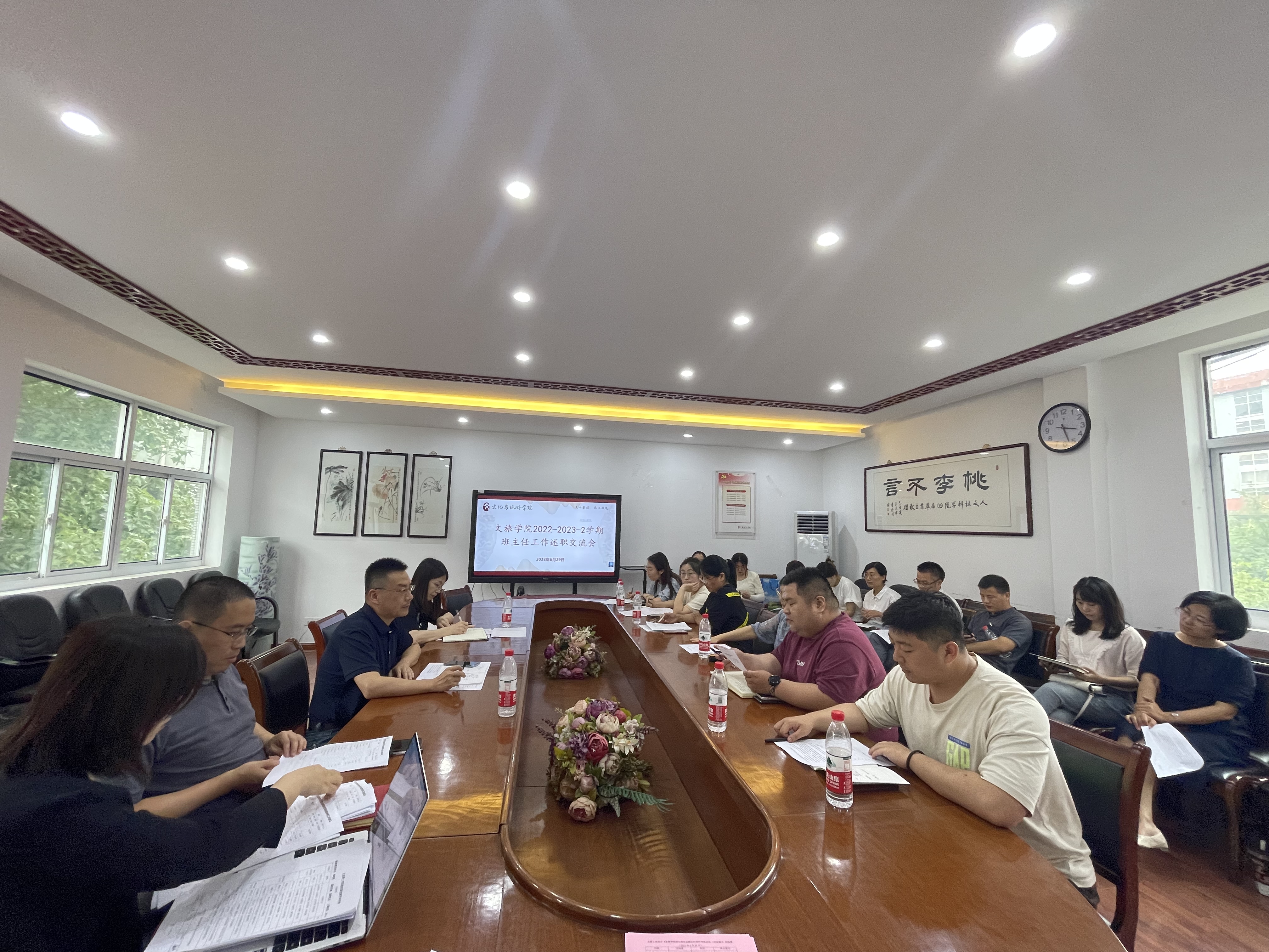 6月29日,文化与旅游学院在人文楼222会议室召开2022-2023-2学期班主任工作述职交流会,学院党委书记张羽程、副院长常如瑜及全体班主任出席本次会议,大会由学院党委副书记、副院长李晓曼主持。