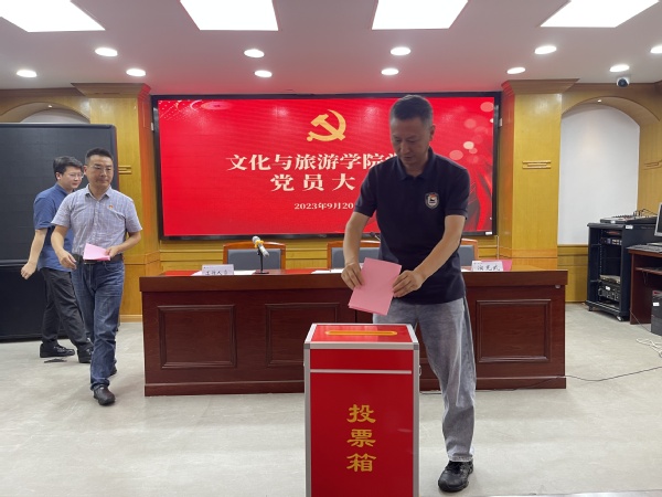 文化与旅游学院党委于9月20日在人文楼404会议室召开党员大会,选举出席江苏理工学院第三次党代会代表。会议由院党委书记张羽程主持。