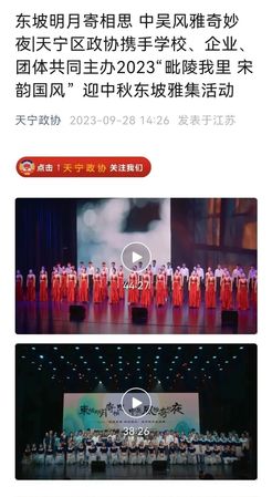 天宁区政协携手学校、企业、团体共同主办2023“毗陵我里 宋韵国风”迎中秋东坡雅集活动