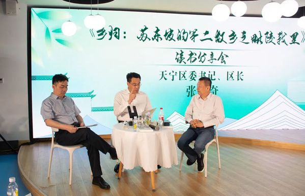 在读书分享环节,区政协委员、中国作家协会会员吴振宇捧着浓浓墨香的新作《乡归:苏东坡的第二故乡之毗陵我里》,讲述了历时多年走访东坡遗迹的心路历程,并为大家分享了创作背后的故事与思考。