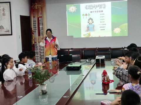 屈原故事重温,童谣手势舞动。“文小青”姚珂珂将话题聚焦到了屈原这一端午文化的重要象征人物上。通过讲述屈原的生平事迹、爱国情怀以及他投江殉国的壮烈故事,让在场的每一个人都感受到了这位伟大诗人的高尚品格和家国大义。孩子们听得聚精会神,眼中闪烁着对屈原的崇敬之情。接着,老师带领大家做起了端午童谣手势舞,又一次加深了大家对端午文化的理解和记忆。