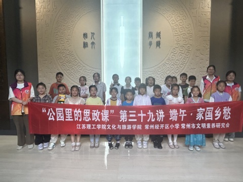 为弘扬中华优秀传统文化,深入挖掘端午节蕴含的家国情怀与乡土情结,5月31日下午,文化与旅游学院联合常州市公园管理中心、常州经开区小学、常州市文明素养研究会在人民公园共同举办端午·家国乡愁主题活动。文小青志愿服务团队走进季子文化中心,通过文化讲解、游园赏花、主题授课和手工体验等形式,带领青少年在传统文化的浸润中感悟家国情怀,体味乡愁记忆。