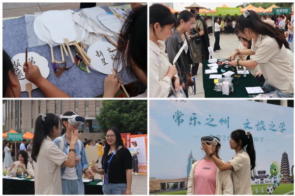 常乐之州,文旅之学:今年学院迎新活动把专业教育引导和专业认知体验相结合,新生既可体验汉服展示、汉字书法、活字印刷、版画拓印等传统文化项目,亲手制作入学纪念卡,触摸千年文明的脉络与印记,邂逅古典色彩的诗意;还可通过VR技术云游校园与常州景点,感受数字化文旅魅力。