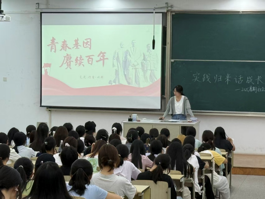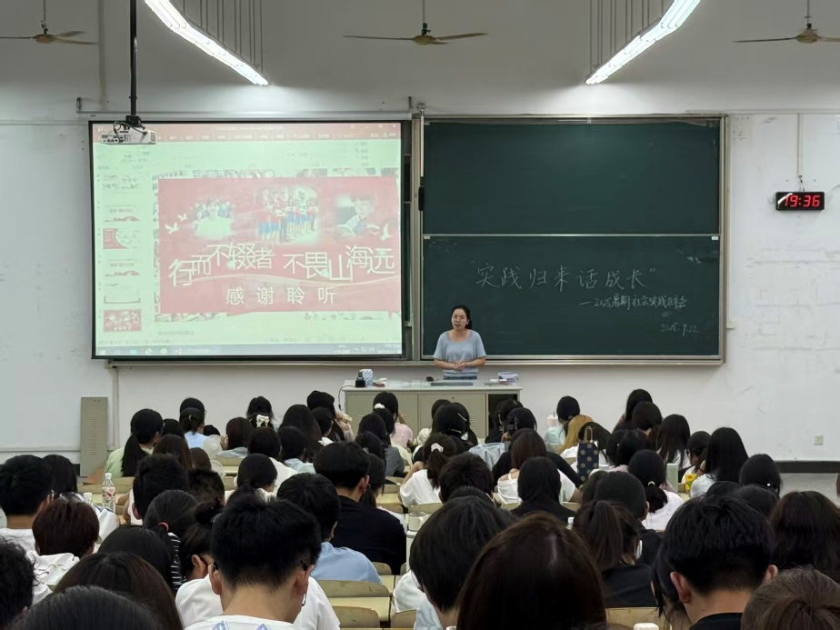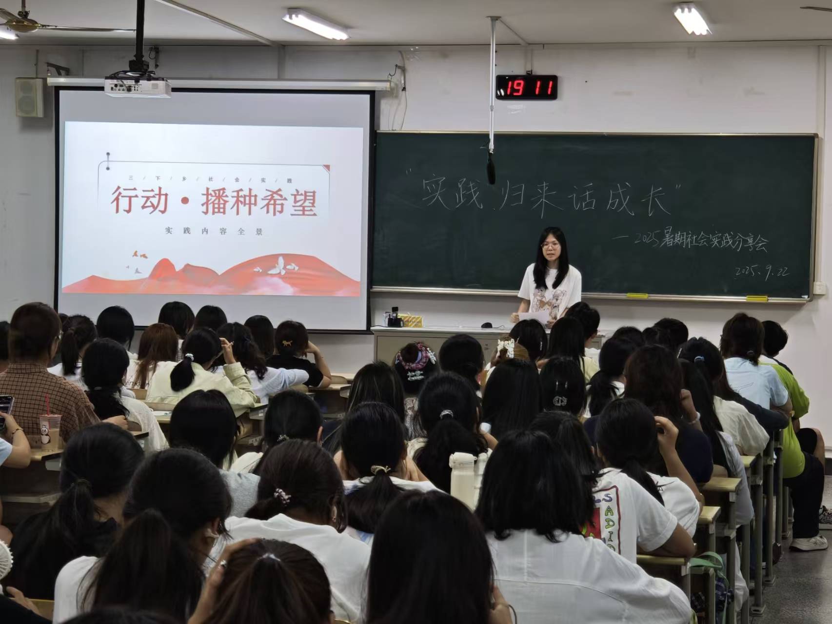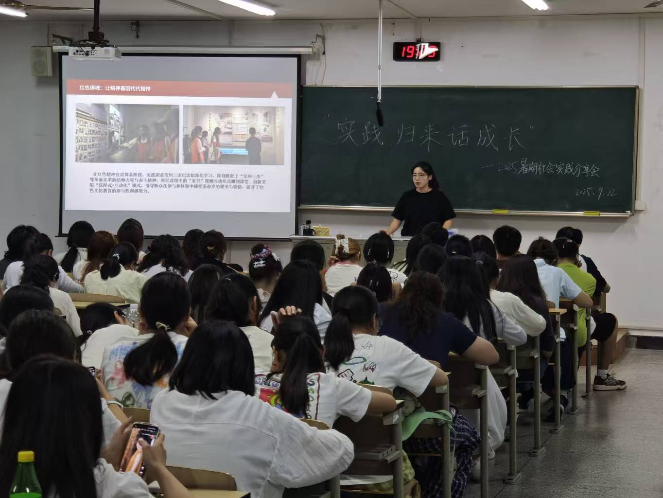 为深入践行习近平总书记对青年工作的重要指示,鼓励文旅学子投身社会实践,增长本领才干,9月22日,文化与旅游学院在64号楼202和203教室举办“实践归来话成长”分享会暨信仰公开课。会议由分团委副书记杨婷婷主持。2025级全体新生参加会议。