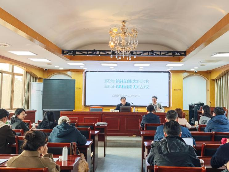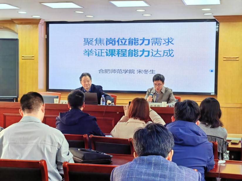 11月17日下午,我院特邀教育部师范类专业认证专家委员会委员、学术专委会主任宋冬生教授,在人文楼404会议室作题为《聚焦岗位能力需求 举证课程能力达成》的专题辅导会。院党委书记张羽程、副院长张丽芬、教务办主任汪明玥、全体中文系专任教师、部分外国语学院教师参加会议,教学质量监控与评估处处长徐鸿翔主持会议。
