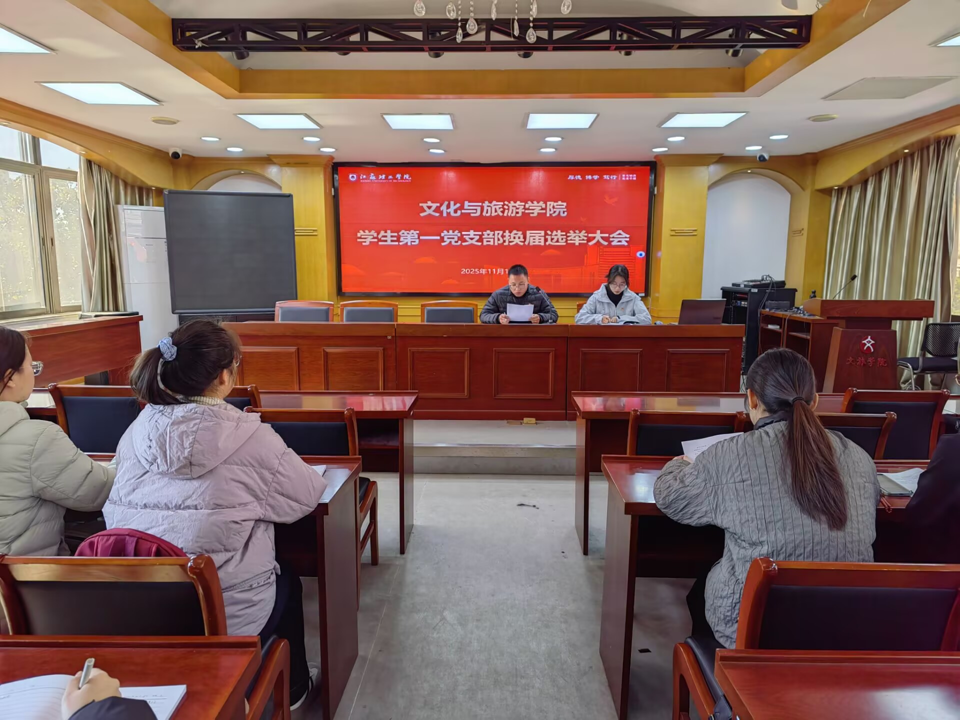 为严格落实党内组织生活制度,扎实推进学院党委换届选举工作,深入学习贯彻党的二十届四中全会精神,11月19日中午12:30,文化与旅游学院中文系、旅游酒店系学生党支部在19号楼404会议室举行二十届四中全会精神专题学习暨换届选举大会。