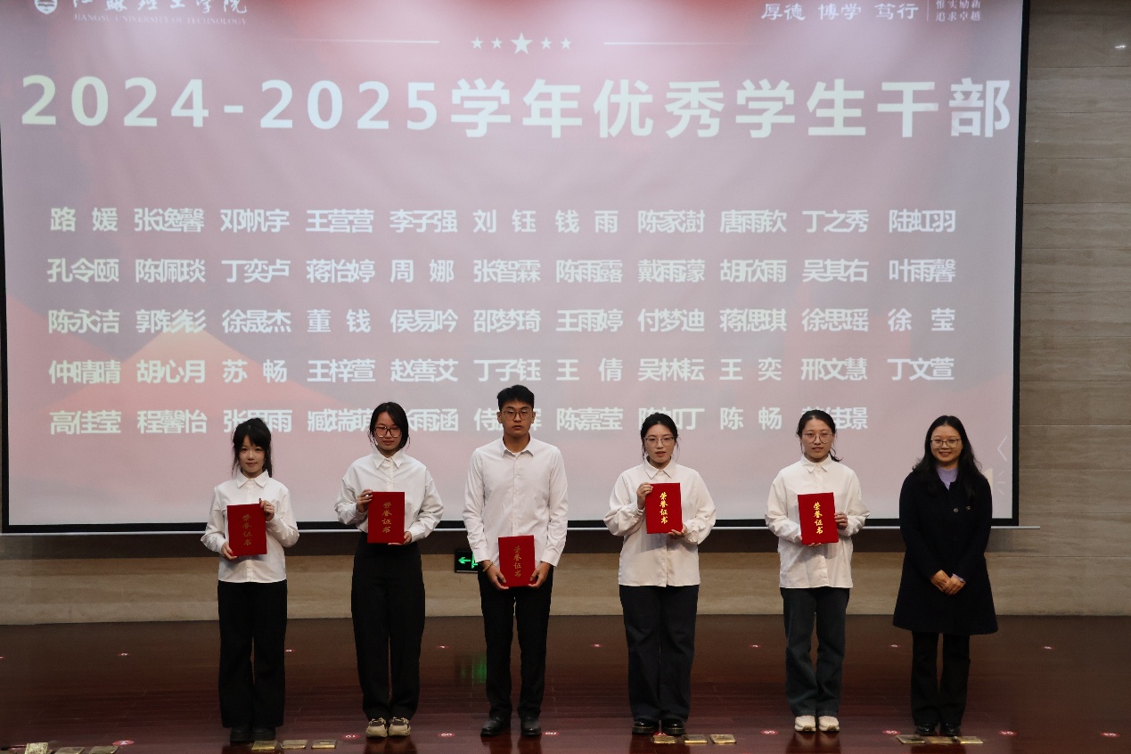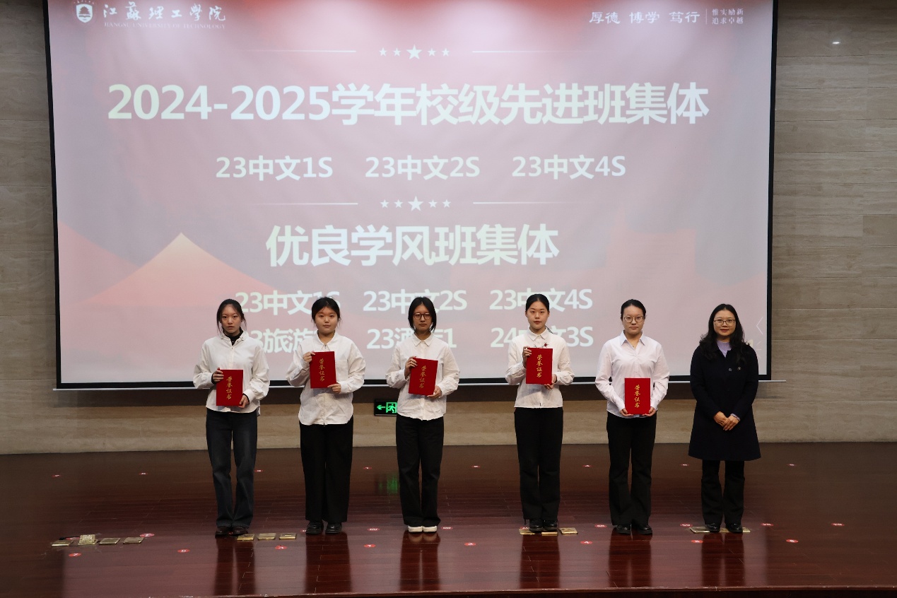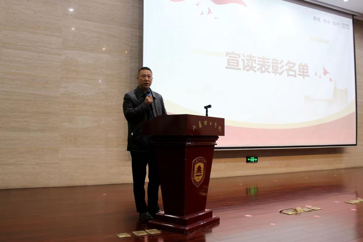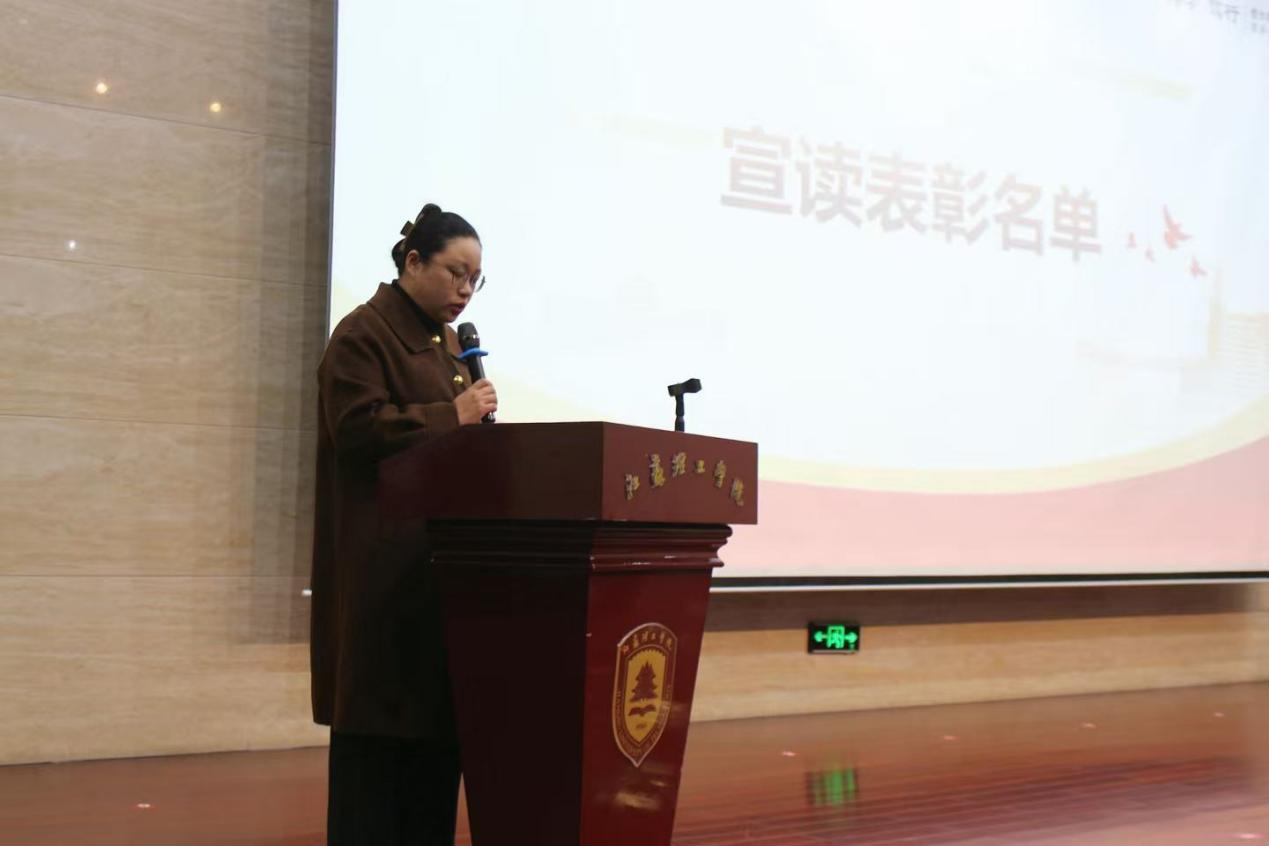 会上,演克武宣读了《2024-2025学年国家奖学金、国家励志奖学金获得者名单》,郑秋娟宣读《2024-2025学年校级先进班集体、优良学风班、本科生三好学生、校优秀学生干部名单》,干霖宣读《2024年五四红旗团支部、优秀共青团干部、优秀共青团员名单》,才峻宣读《文化与旅游学院志愿实践、校园文化、科技创新领域获得省、市级团队及个人的奖项名单》,叶帅宣读《文化与旅游学院2025年度军训先进个人、优秀带训教师名单》。随后进行表彰,学院领导为获奖团队及个人颁发证书。这些荣誉不仅是对获奖学生个人努力的肯定,更是对全体师生赓续奋斗的鼓舞。