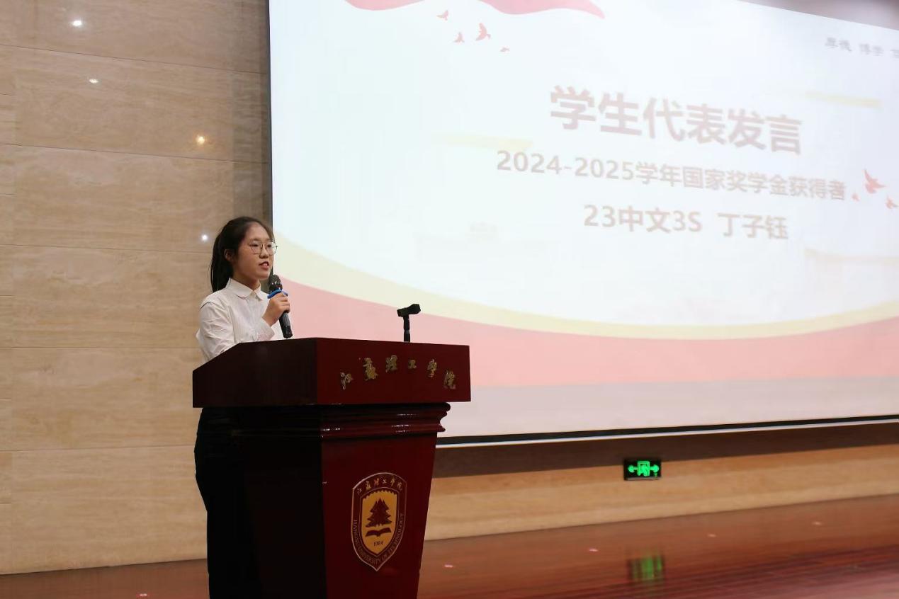 2024-2025年国家奖学金获得者23中文3S丁子钰与同学们作朋辈分享,以专注、实践、勇敢、自洽为核心,结合自身经历分享学习成长心得,提醒大家沉心治学、主动实践、勇于突破、学会自洽,鼓励学弟学妹以大学时光为契机,在探索沉淀中逐梦成长,雕琢理想自我。