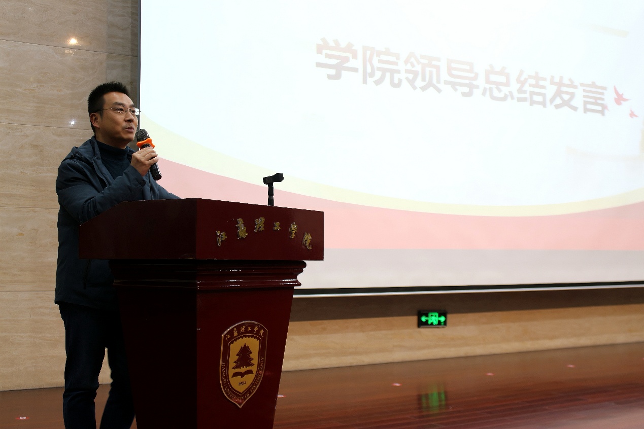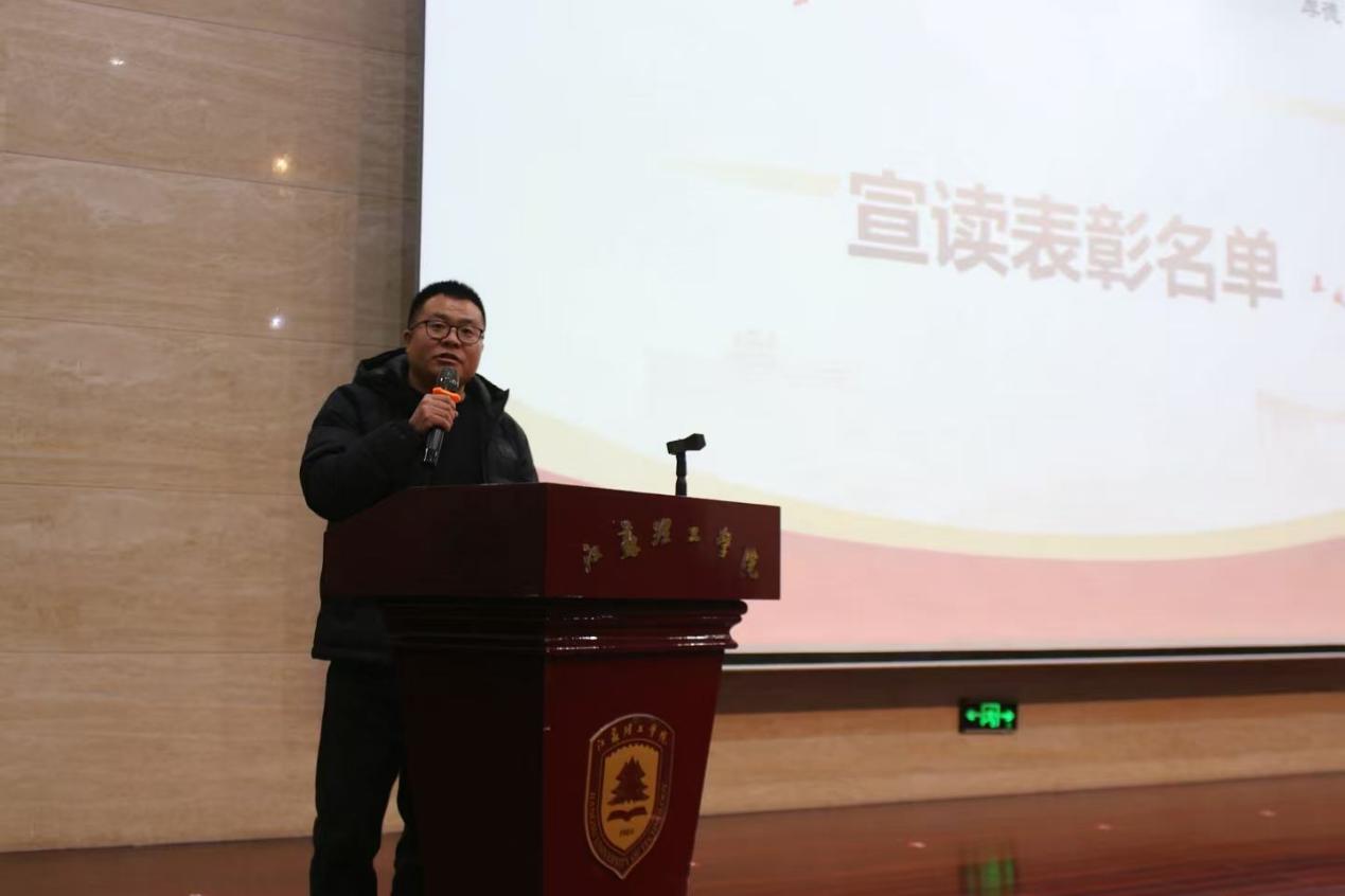 张羽程代表学院对获得表彰的团队及个人表示祝贺,对本年度学风建设工作给予了充分肯定。他指出专业技能是人才培养的核心要素,是实现个人价值的重要基石。张羽程就学院优良学风建设,对同学们提出希望,一是要把握时代脉搏,锤炼过硬本领,要紧跟时代发展趋势,将理论知识转化为实践能力;二是要注重点滴积累,厚积薄发,要以赛促学、以学促赛,把日常学习作为参赛的坚实基础,让竞赛成为检验学习成效的试金石;三是要依靠学习走向未来,勇于开拓创新,不断更新知识体系,在学习中抢占未来发展制高点;四是要对标先进典型,明确发展方向,主动向优秀榜样看齐,合理规划时间,充分利用学院搭建的实践平台,在交流互鉴中实现自我超越。他还强调学院将持续优化实践育人体系,完善赛事支持机制,为学生成长成才搭建更广阔的舞台,推动专业教育与时代发展同频共振。