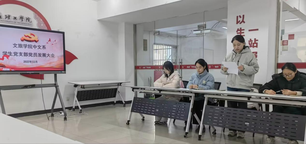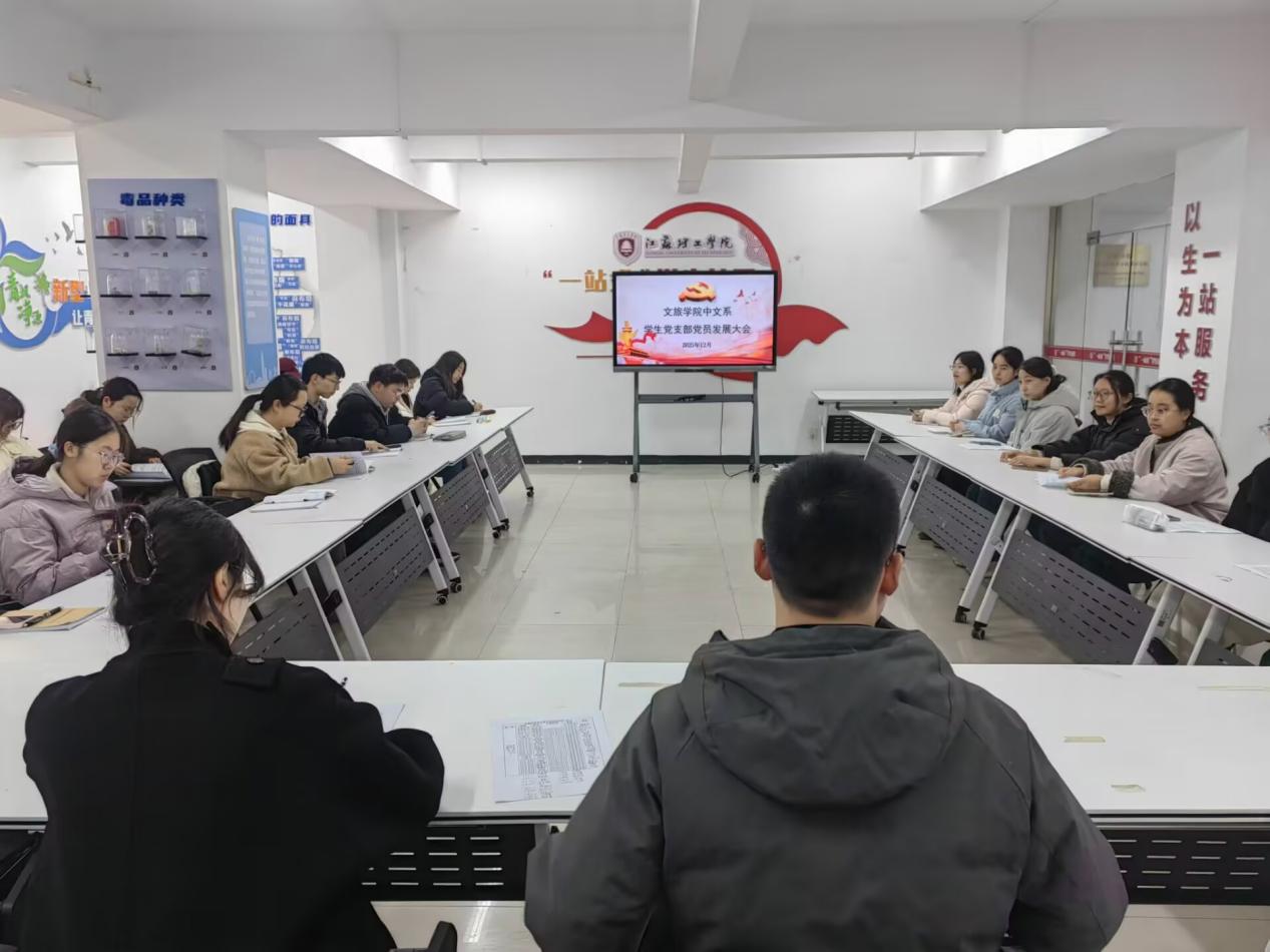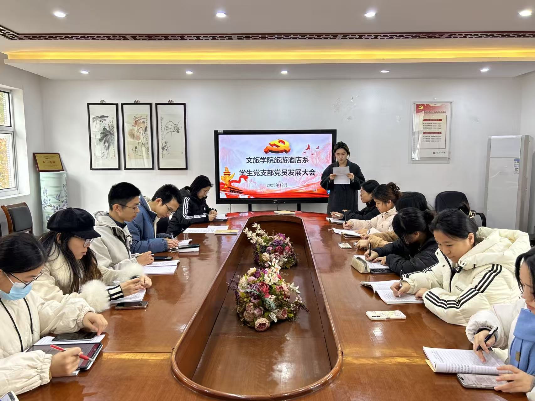 2025年12月3日,文化与旅游学院中文系、旅游酒店系学生党支部分别在1号楼学生一站式社区、19号楼222会议室召开2025年下半年党员发展大会。大会严格遵循《中国共产党发展党员工作细则》,以严把党员“入口关”、强化队伍建设为目的,为党组织凝聚新鲜力量,提升支部凝聚力。