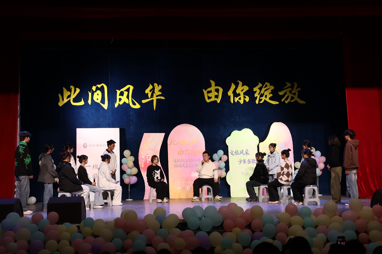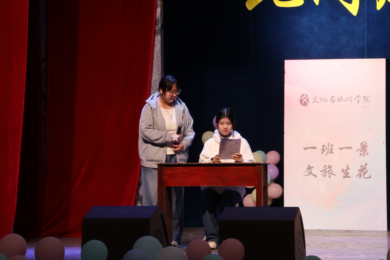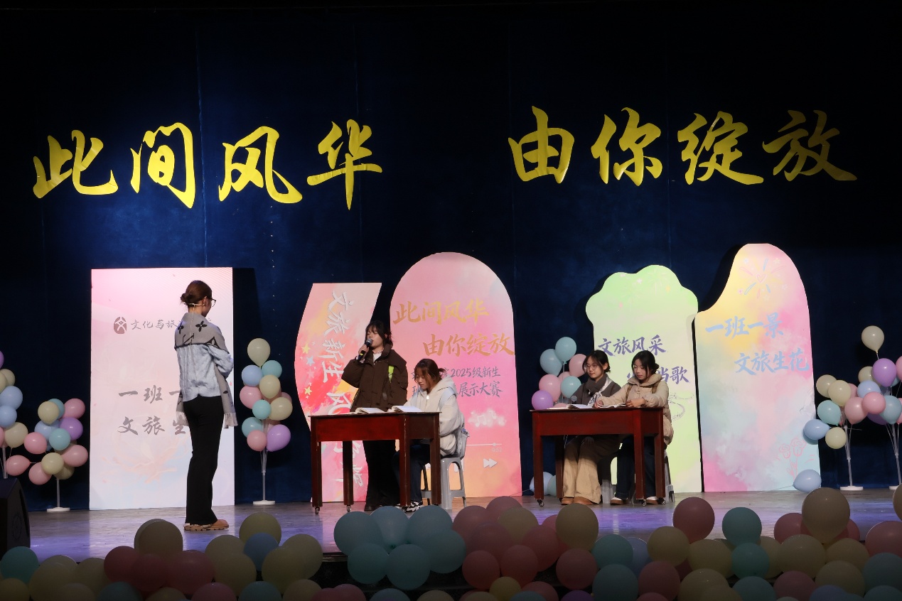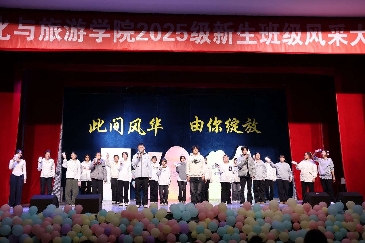 为助力2025级新生快速融入学院大家庭,展现文旅学子昂扬向上的青春风貌。12月18日晚,文化与旅游学院2025级新生班级风采大赛在西苑大礼堂隆重举行。学院党委副书记兼副院长郑秋娟、校团委老师、学院全体辅导员、25级班主任与全体新生齐聚一堂,共同畅享了这场洋溢青春活力与班级情谊的精彩盛会。本次大赛以“此间风华,由你绽放”为主题,由王子源和丁文萱同学共同主持。