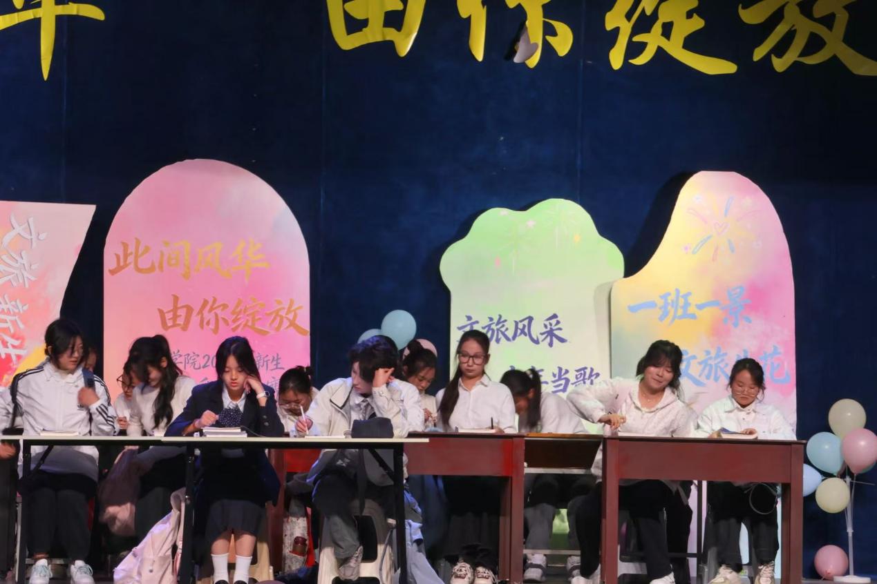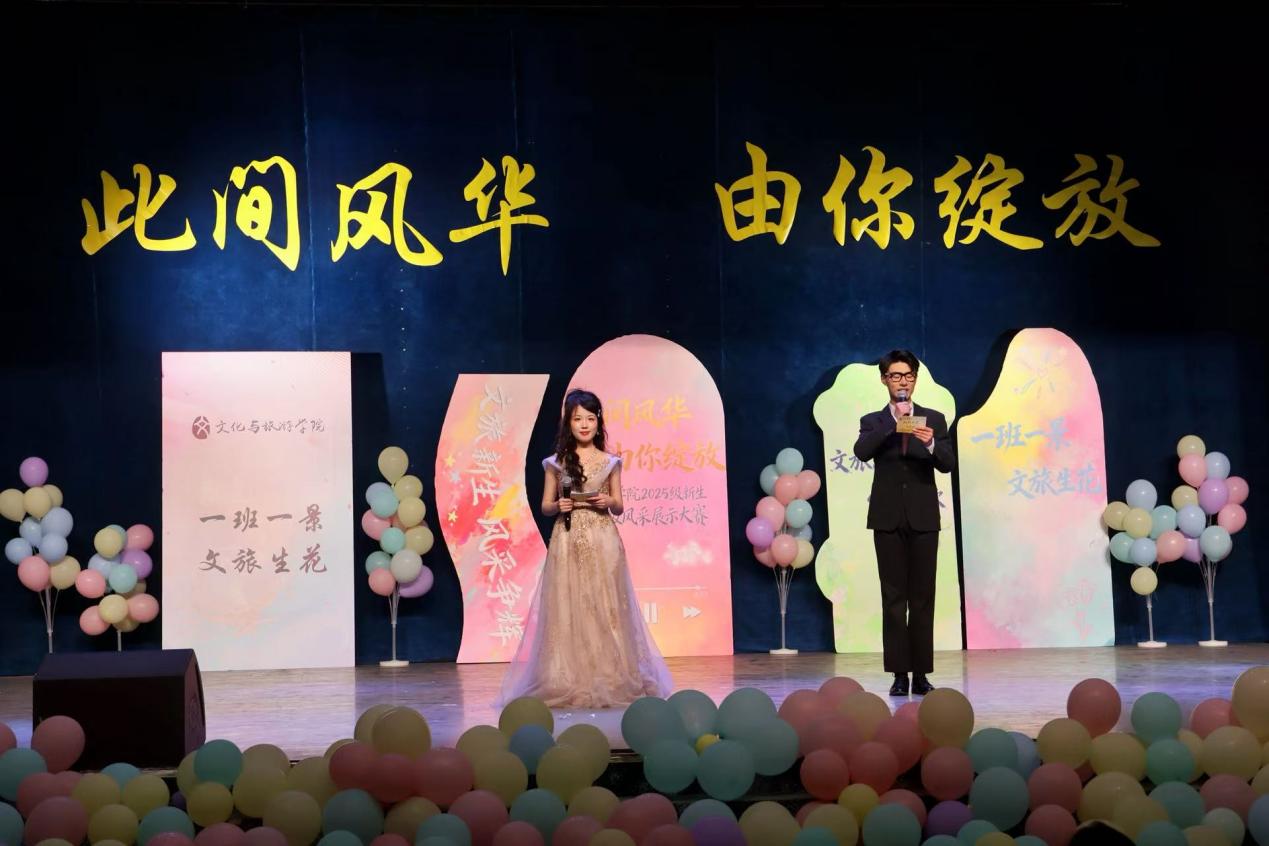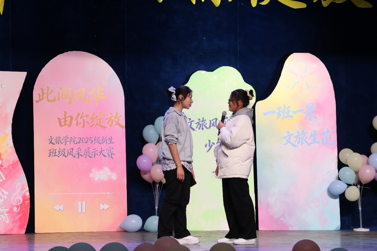 为助力2025级新生快速融入学院大家庭,展现文旅学子昂扬向上的青春风貌。12月18日晚,文化与旅游学院2025级新生班级风采大赛在西苑大礼堂隆重举行。学院党委副书记兼副院长郑秋娟、校团委老师、学院全体辅导员、25级班主任与全体新生齐聚一堂,共同畅享了这场洋溢青春活力与班级情谊的精彩盛会。本次大赛以“此间风华,由你绽放”为主题,由王子源和丁文萱同学共同主持。
