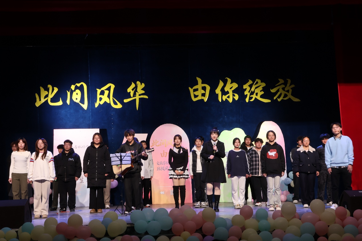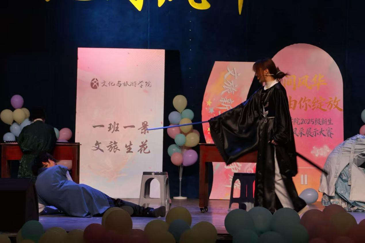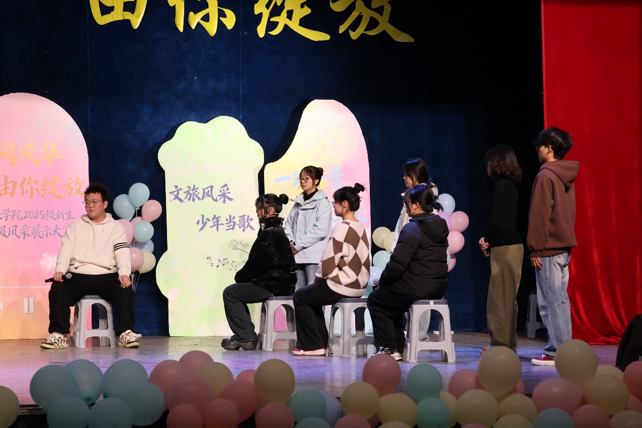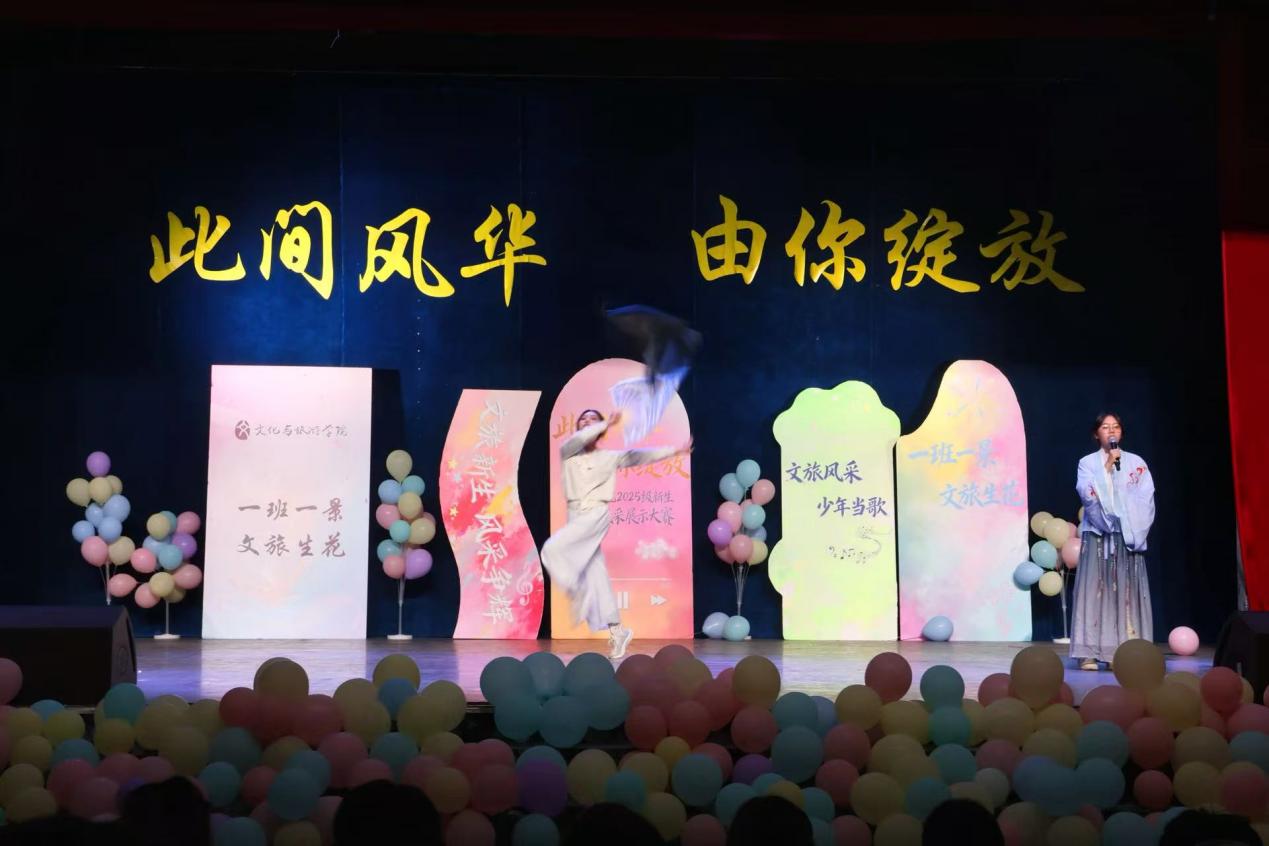 为助力2025级新生快速融入学院大家庭,展现文旅学子昂扬向上的青春风貌。12月18日晚,文化与旅游学院2025级新生班级风采大赛在西苑大礼堂隆重举行。学院党委副书记兼副院长郑秋娟、校团委老师、学院全体辅导员、25级班主任与全体新生齐聚一堂,共同畅享了这场洋溢青春活力与班级情谊的精彩盛会。本次大赛以“此间风华,由你绽放”为主题,由王子源和丁文萱同学共同主持。