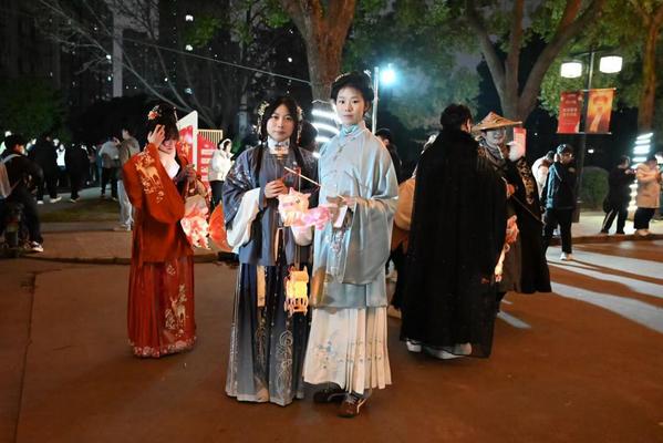 活动现场,来自文旅学院的汉服社同学们格外引人注目。她们身着形制规整、纹样精美的传统汉服,梳着雅致发髻,踏灯而行、浅笑嫣然,与满园花灯、亭台楼阁完美相融,尽显东方古典之美。行走在灯廊之中,她们或驻足赏灯,或轻声解谜,或聆听乐曲,一举一动尽显温婉大气,不仅生动还原了传统元宵踏灯赏景的习俗风情,更向现场师生、外国友人展示了汉服文化与传统节日的独特魅力,用青春姿态诠释传统文化之美,成为元宵灯会中最具古韵的风景线,赢得了大家的一致称赞。