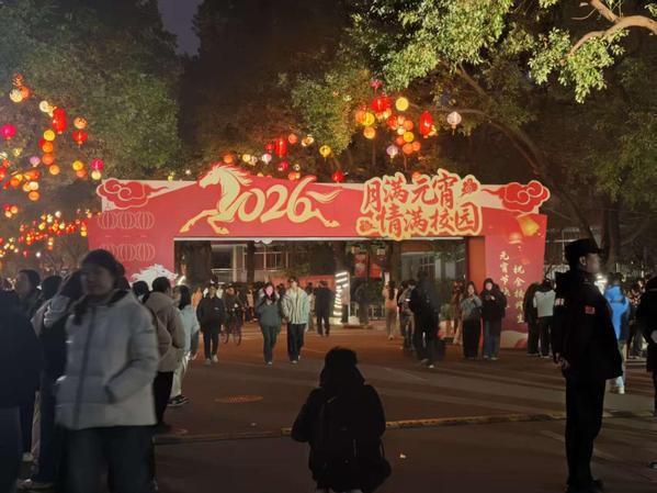 本次元宵活动亮点纷呈、趣味十足。行知路上灯火绵延,从商学院门口至凌波桥,千盏花灯次第点亮,传统宫灯雅致端庄,创意花灯灵动新颖,一步一景皆是上元盛景。红灯笼下,线上线下猜灯谜同步开展,吸引同学们驻足思索、踊跃应战;行知路旁亭内,古筝声声婉转悠扬,校内民乐高手现场演奏,弦音袅袅与灯海相映成趣,尽显传统文化之美。活动现场还设置了礼品兑换区,参与活动、完成任务即可兑换精美元宵文创与实用好物,让同学们在收获知识与快乐的同时,把节日好运带回家。